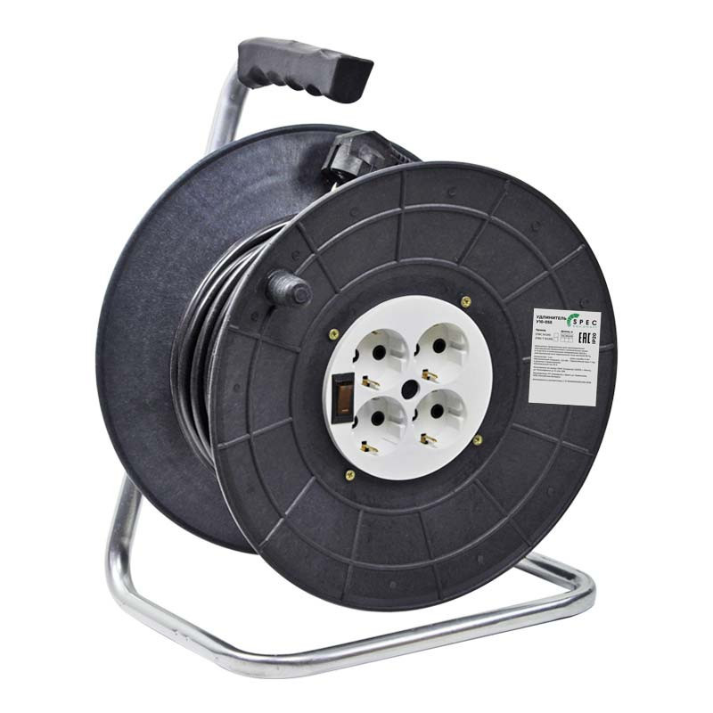 Удлинитель на катушке с выключателем SPEC 30м (4 роз., 2,0кВт, с/з, ПВС 3х1, производство РБ)Нет в наличии