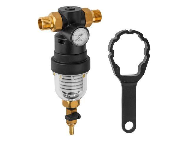 Фильтр самоочищающийся 3/4" нар., с манометром, AV Engineering (инд. упак.) (промывной латунный, фильтр