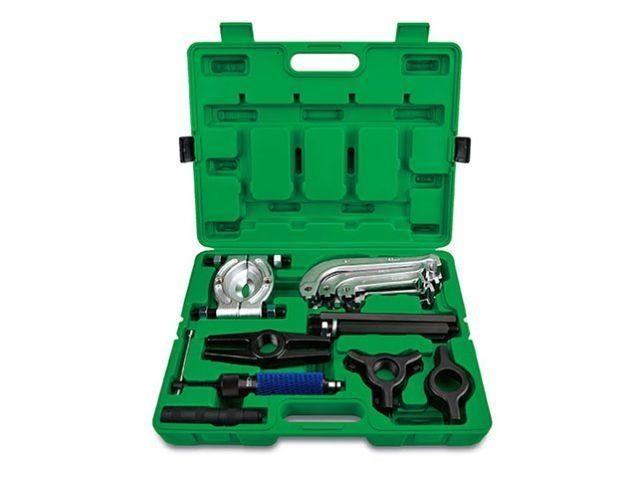 В комплект входят 14 предмета, включая гидравлическое устройство, различного вида направляющие, сепаратор и 3-хлапые съемники.