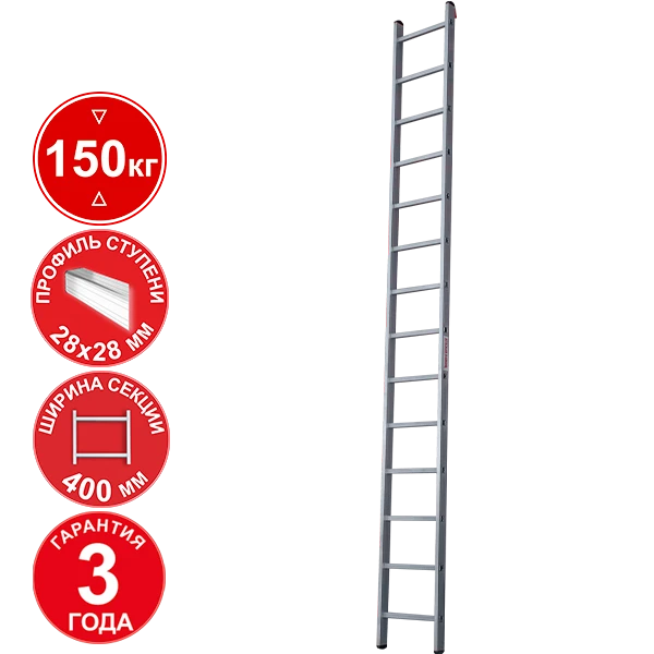 Профессиональная прочная приставная лестница для интенсивного использования. Ширина секции: 400 мм. Увеличенные рифлёные перекладины 28?28 мм для надёжного сцепления. Профиль стоек: 72?23 мм. Стойки и ступени из экструдированного алюминиевого профиля. Многократная развальцовка в соединении ступеней со стойками обеспечивает высокую прочность и долговечность. Рифлёная поверхность ступеней для безопасного подъёма и спуска. Шаг ступеней 260 мм. Опорные наконечники из двухкомпонентного пластика (жёсткий компонент отвечает за надёжность крепления, мягкий препятствует скольжению лестницы). Опорные наконечники установлены с двух сторон лестницы для удобства работы. Оборудована опорами на стену для предотвращения повреждений контактной поверхности, повышения надёжности опоры и правильной установки. Артикул Ступени A, м B, м C, м D, мм E, мм F, м G, м H, м Вес, кг 3210106 6 1,56 2,8 0,40 72 23 0,1 1,56 0,41 2,9 3210107 7 1,82 3,05 0,40 72 23 0,1 1,82 0,41 3,4 3210108 8 2,08 3,3 0,40 72 23 0,1 2,08 0,41 3,9 3210109 9 2,34 3,55 0,40 72 23 0,1 2,34 0,41 4,3 3210110 10 2,6 3,8 0,40 72 23 0,1 2,6 0,41 4,8 3210111 11 2,86 4,05 0,40 72 23 0,1 2,86 0,41 5,2 3210112 12 3,12 4,3 0,40 72 23 0,1 3,12 0,41 5,7 3210113 13 3,38 4,55 0,40 72 23 0,1 3,38 0,41 6,2 3210114 14 3,67 4,8 0,40 72 23 0,1 3,64 0,41 6,6 3210115 15 3,98 5,05 0,40 99 23 0,125 3,9 0,41 9,5 3210116 16 4,24 5,3...