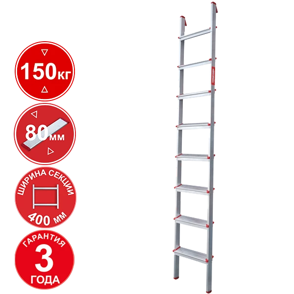 Лестница профессиональная алюминиевая односекционная 8 ступеней 80 мм NV3211 Новая высота 3211108